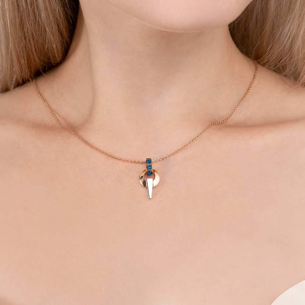 Mit einer Höhe von ca. 24 mm ist dieses Schmuckstück ein stilvolles Highlight, das Modernität und klassische Eleganz miteinander verbindet. Die Kombination aus warmem Rotgold, kühlem Weißgold und den lebendigen, himmelblauen Steinen erzeugt ein faszinierendes Farbspiel, das den Anhänger zu einem besonderen Blickfang macht. Dieses edle Accessoire eignet sich perfekt für festliche Anlässe, aber auch, um dem Alltagslook eine exklusive Note zu verleihen.Besonders harmonisch wirkt der Anhänger in Kombination mit den passenden Ohrringen aus derselben Kollektion (Art-Nr. 70830649) – zusammen entsteht ein wunderschönes Set, das Stil und Persönlichkeit unterstreicht.