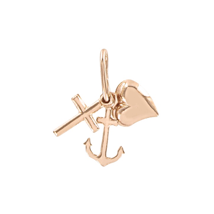 Der Anhänger kombiniert die Symbole Kreuz, Anker und Herz, die für Glaube, Hoffnung und Liebe stehen