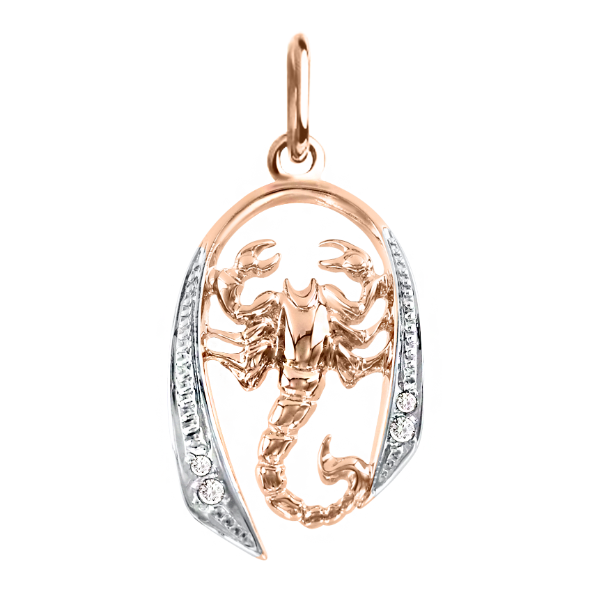 Glänzender Anhänger „Sternzeichen Skorpion“, 24.10-22.11, aus 585er Rotgold, mit Einsätzen aus 4 Phianiten, verziert mit rhodiniertem Überzug, Höhe ≈ 30 mm