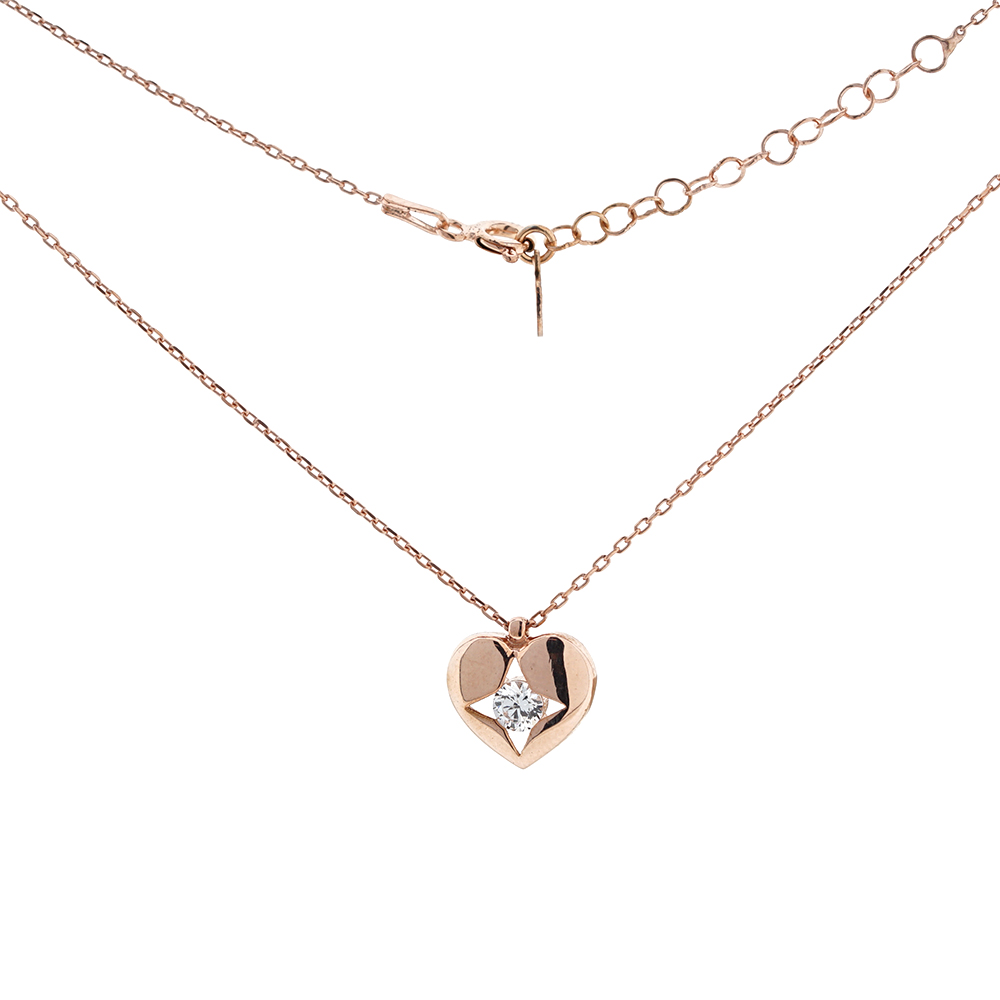 Feine Ankerkette mit einem Herz-Anhänger aus 925 Silber mit Swarovski-Kristall, rosevergoldet