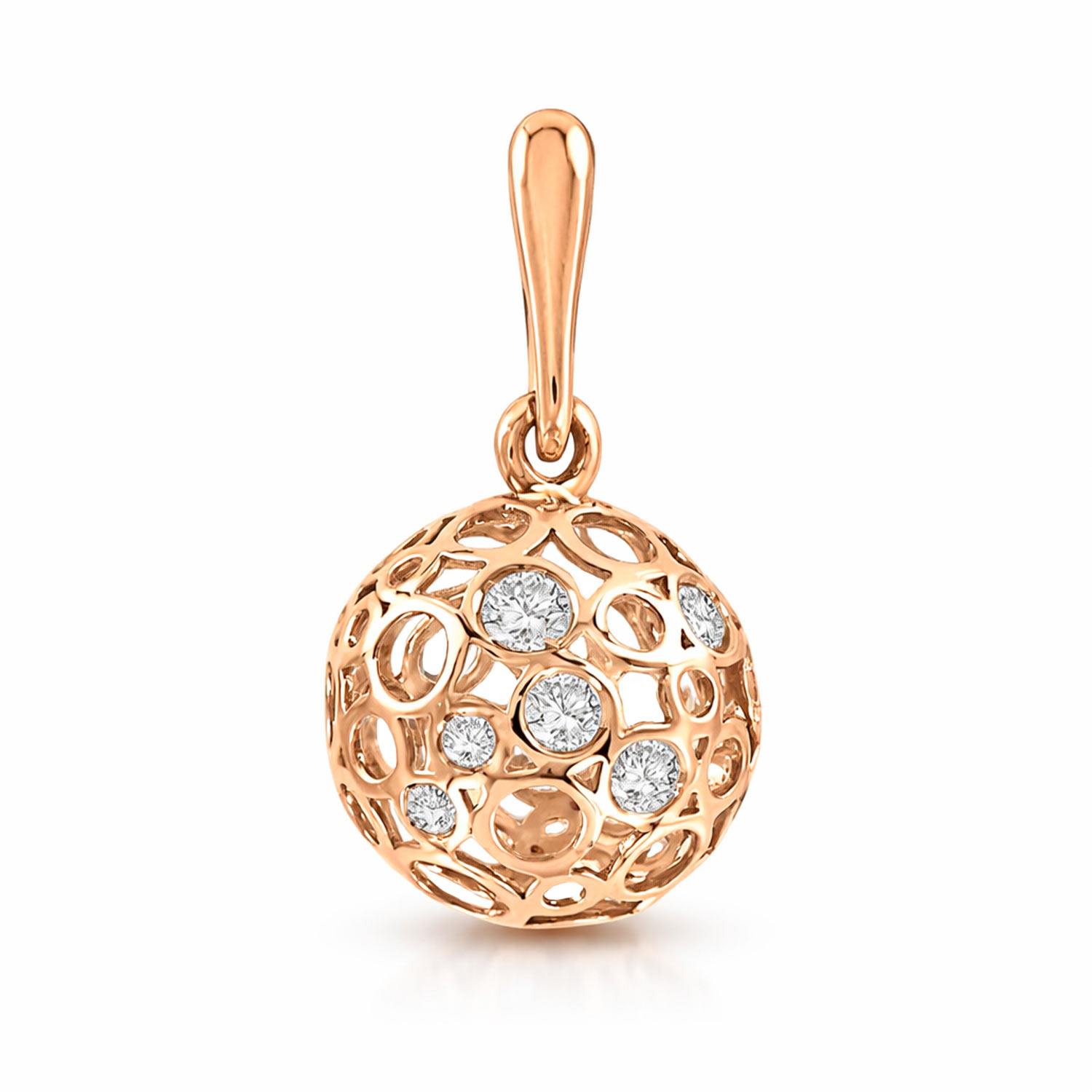 Interessanter kugelförmiger Anhänger aus 585er Rotgold mit Zirkonia