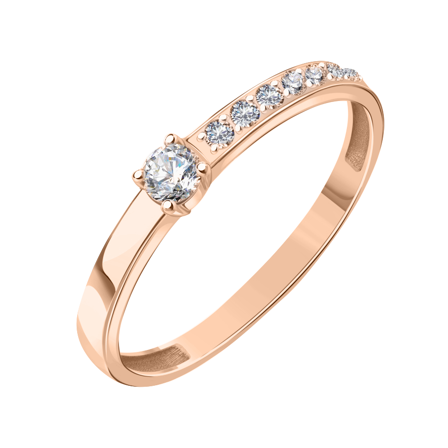 Attraktiver Damenring aus 585er russischem Rotgold, mit Einsätzen aus 8 Zirkonia, Breite ≈ 3 mm