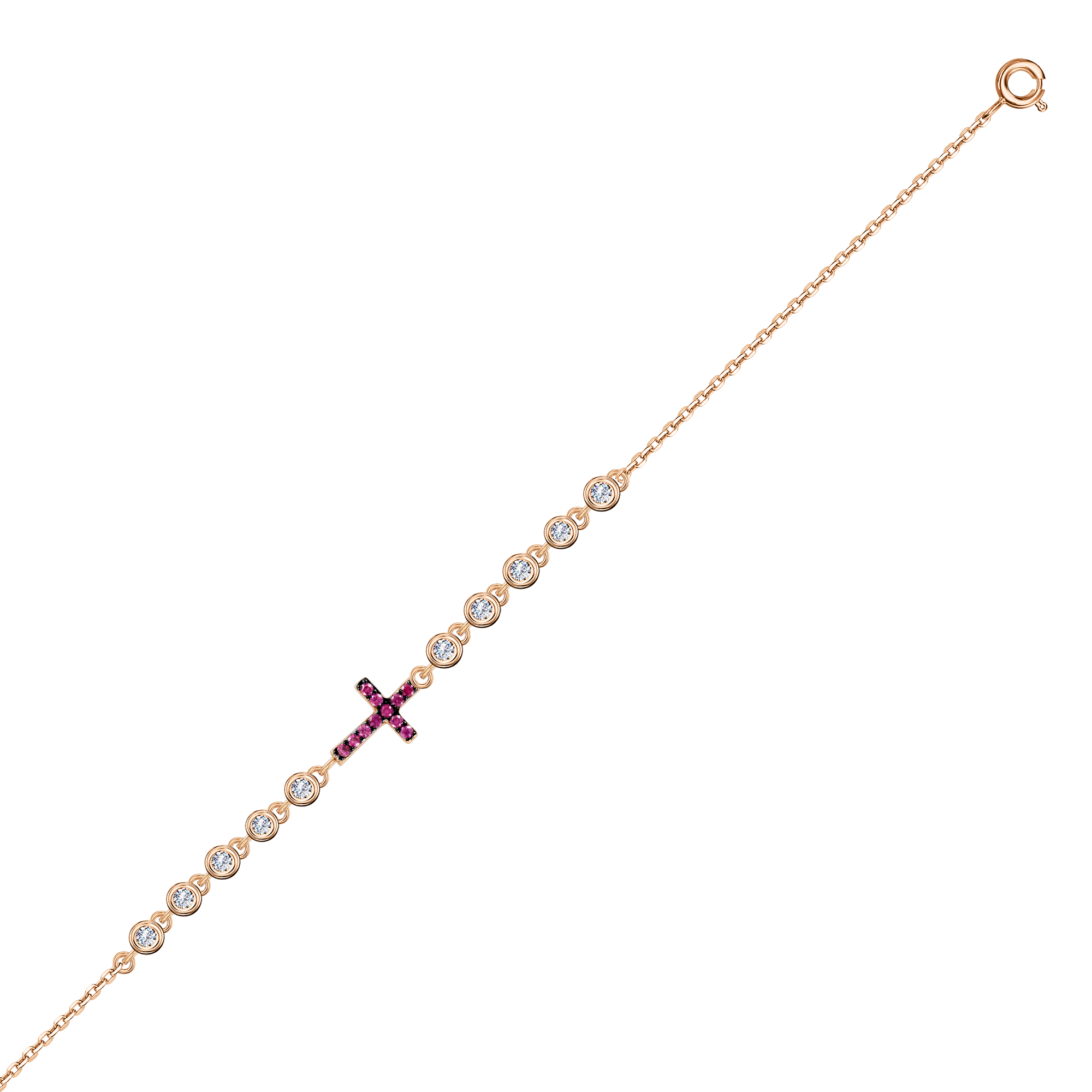 Eine Seite des Kreuzes ist mit funkelnden weißen Zirkonia besetzt, die andere mit tiefroten Steinen – je nach Stimmung tragbar.
