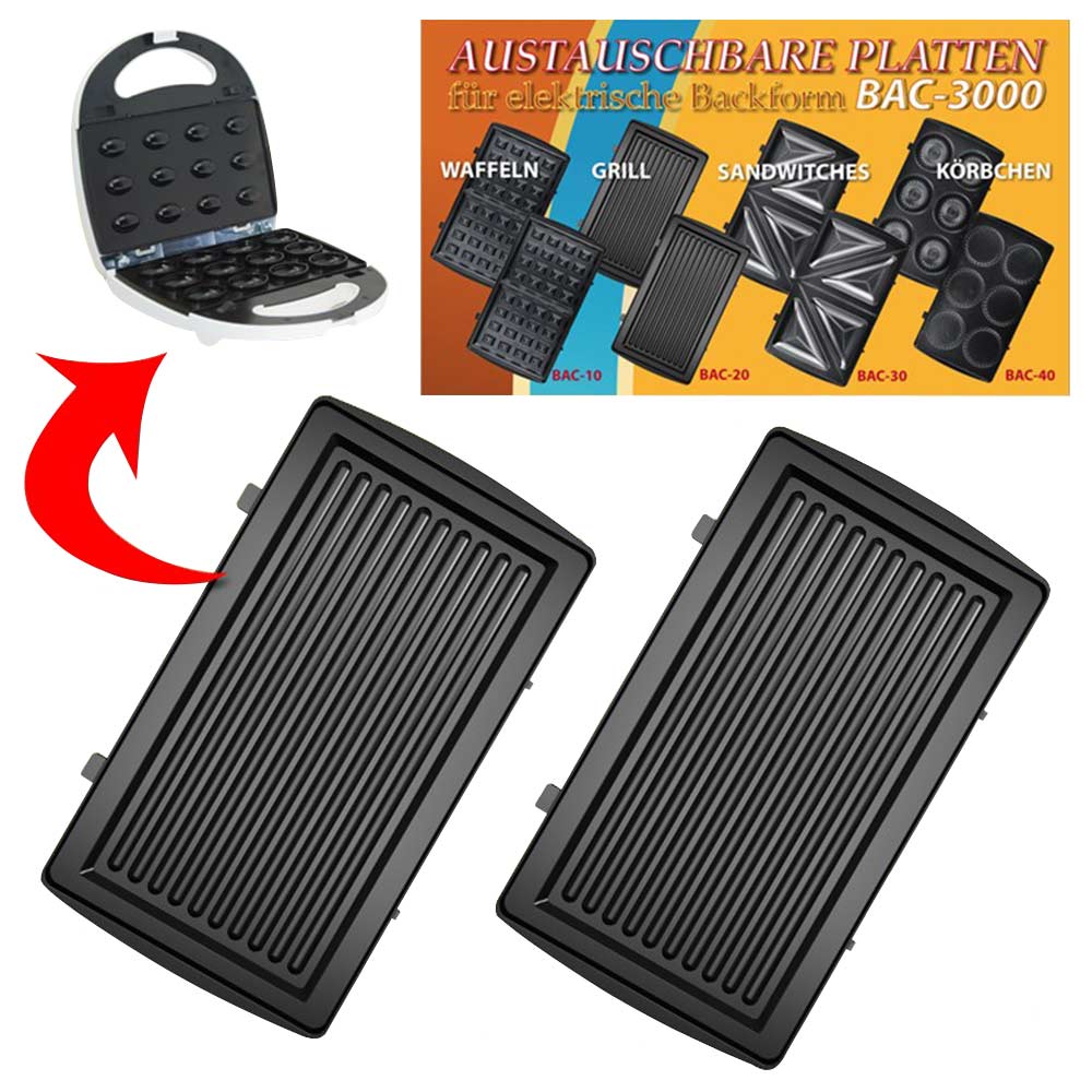 Wechselplatten BAC-20-GRILL mit Antihaftbeschichtung für elektrischen Backautomat Nussbäcker BAC-3000