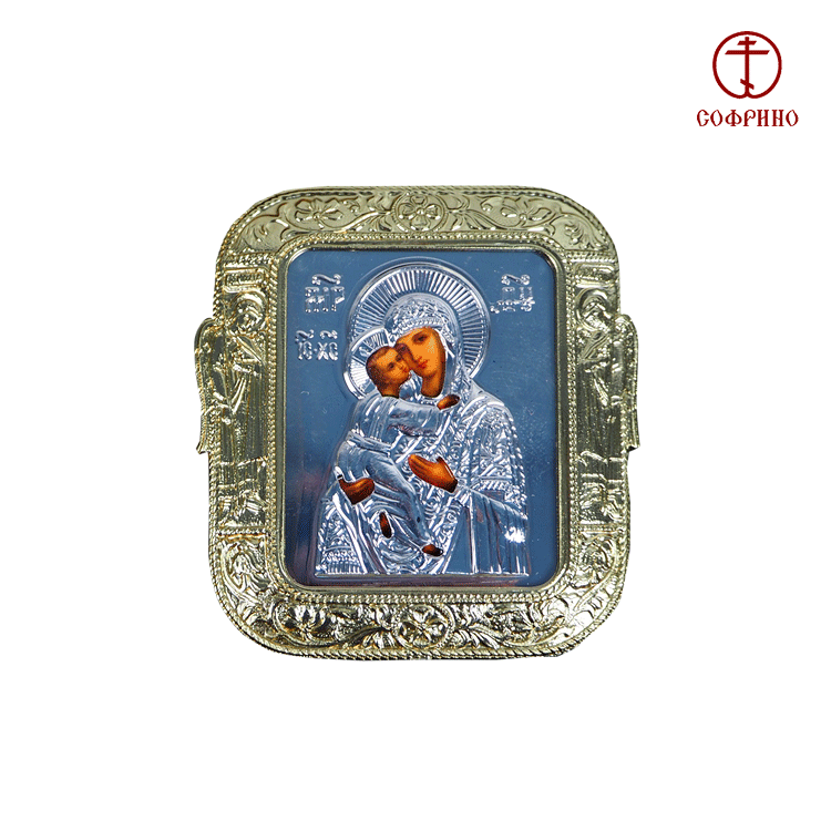 Auto-Ikone "Wladimirskaja" - silber, mit Ornamenten