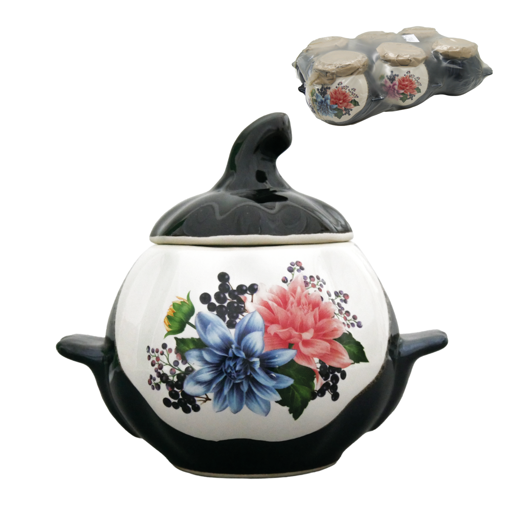 Backtopf "Kürbis" mit Henkeln, 0.75 l, mit Blumen-Johannisbeer-Dekor (Set mit 6 Töpfen)