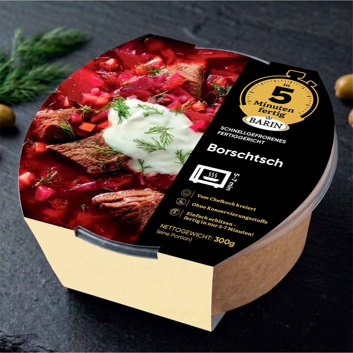 Ein Klassiker der osteuropäischen Küche in moderner, praktischer Form: Borschtsch von BARIN – aromatisch, sättigend und in wenigen Minuten servierbereit.Die Suppe überzeugt durch einen ausgeprägten, natürlichen Rote-Bete-Geschmack, der dem Gericht seine charakteristische Tiefe und leichte Süße verleiht. Fein abgestimmt mit zarter Hühnerbrühe entsteht ein harmonisches Zusammenspiel aus Frische und herzhaftem Aroma.