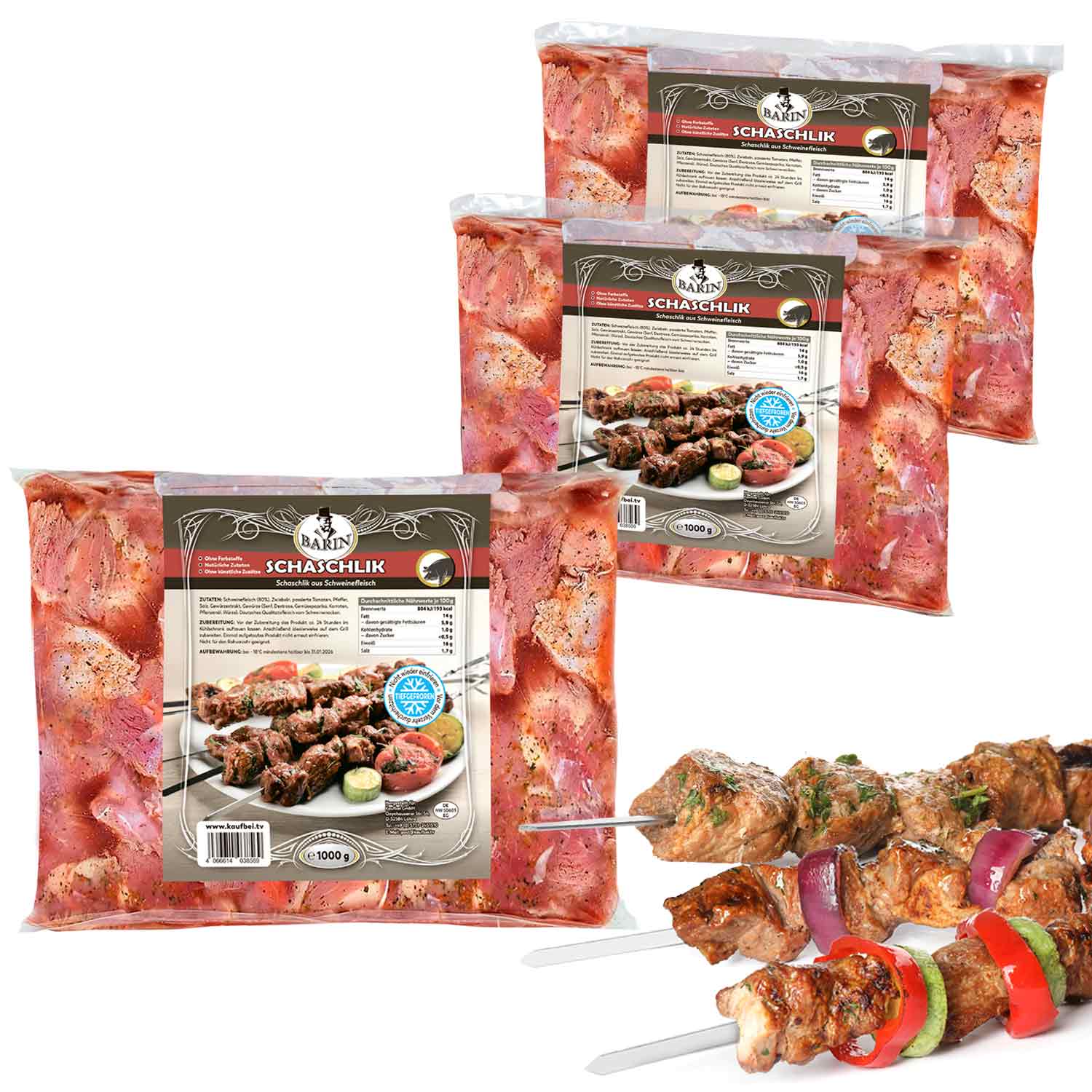 BARIN Schaschlik aus Schweinenacken (3x 1000 g) – Spießfertig mariniert, regional und ohne Zusätze