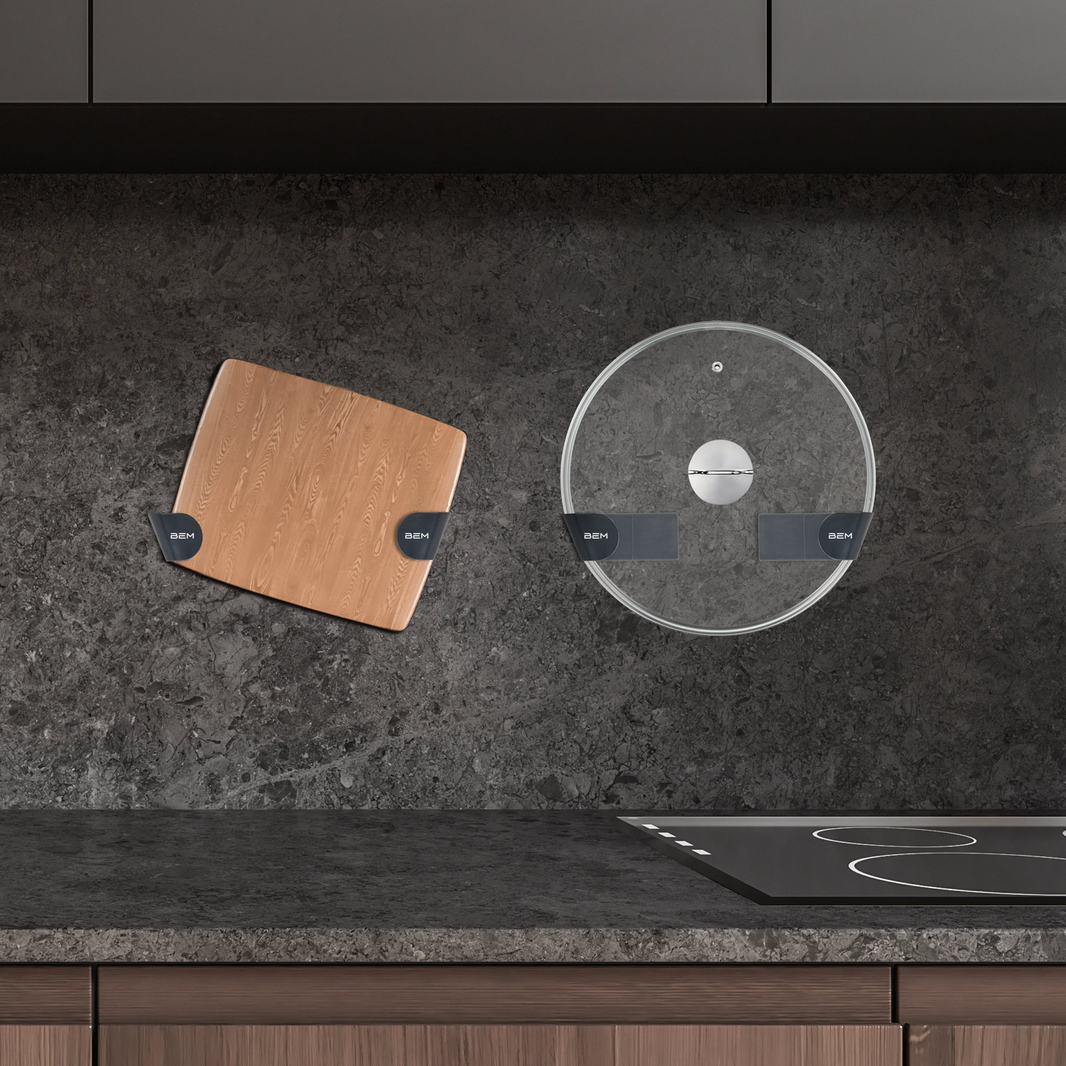 Die Deckel von Pfannen und Töpfen liegen ständig im ganzen Schrank verstreut, und sobald man einen der Töpfe und Pfannen anfasst, verstreuen sie sich und verwandeln den Küchenschrank in eine unordentliche Ecke.Der universelle Deckelhalter für die Wandmontage mit selbstklebender Rückseite ist eine großartige Lösung für dieses Problem. Befestigen Sie ihn einfach an der Innenseite eines Schranks, an der Wand, an der Innenseite einer Schranktür oder an einer anderen Oberfläche und Sie werden überrascht sein, wie viel Platz in Ihrer Küche frei wird. Dieser Halter eignet sich auch zur Aufbewahrung von Schneidebrettern, Pfannen und mehr.