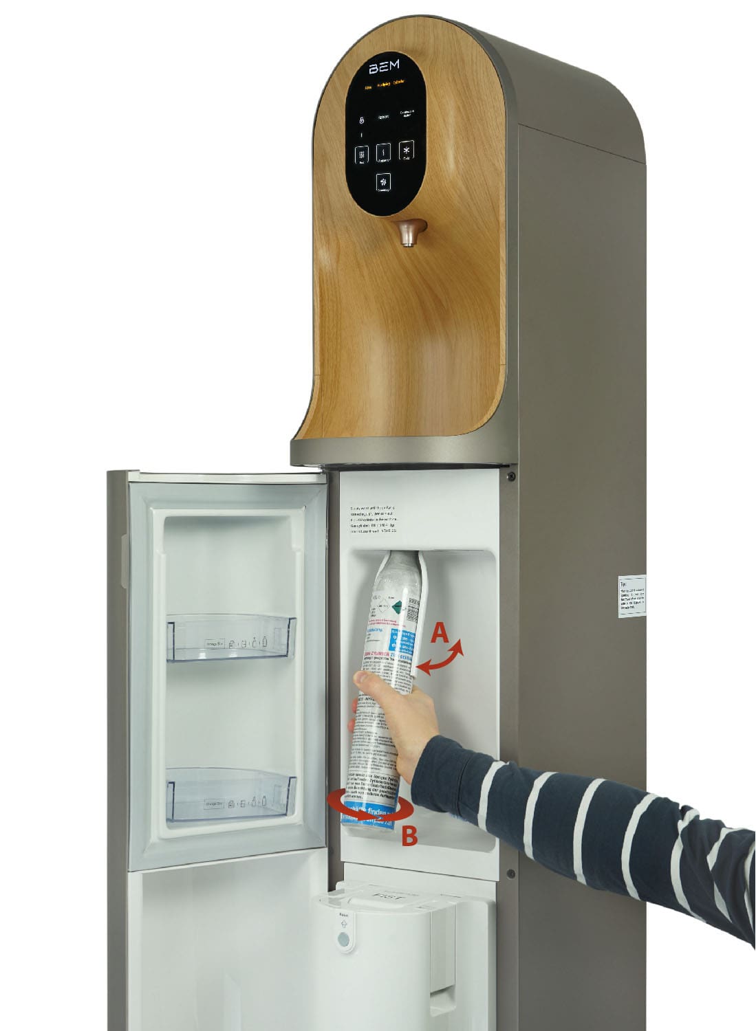 Dank der Möglichkeit optional eine CO2-Patrone an das Gerät anzuschließen, haben Sie zusätzlich die Möglichkeit Sprudelwasser zu erhalten.