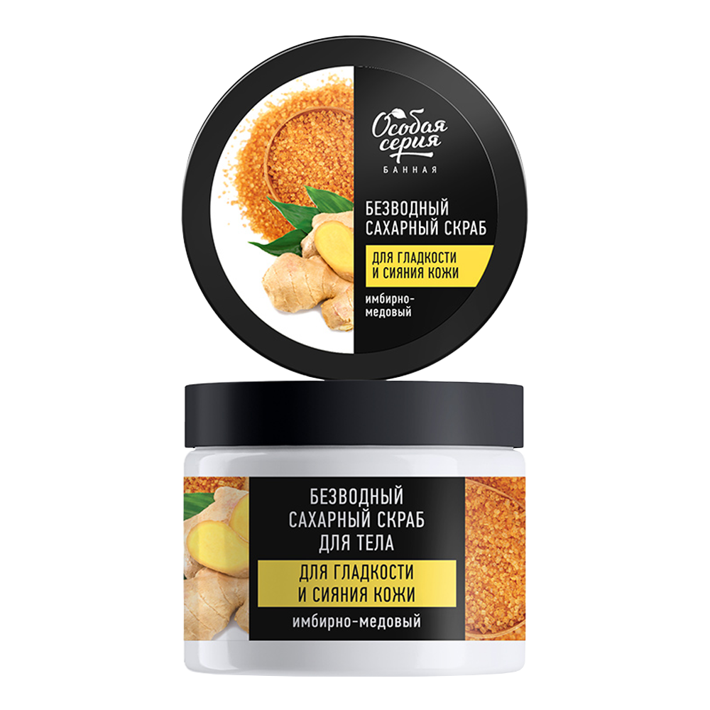 Besondere Serie wasserfreies Zucker-Körperpeeling "Ingwer-Honig" für glatte und strahlende Haut, 400 ml