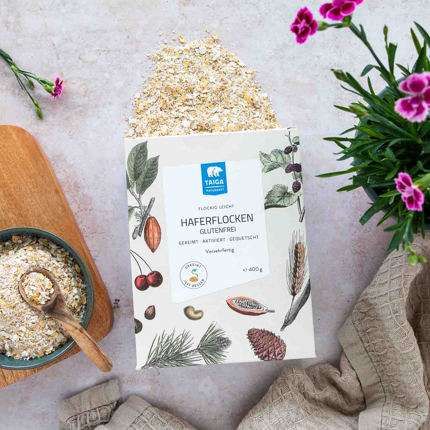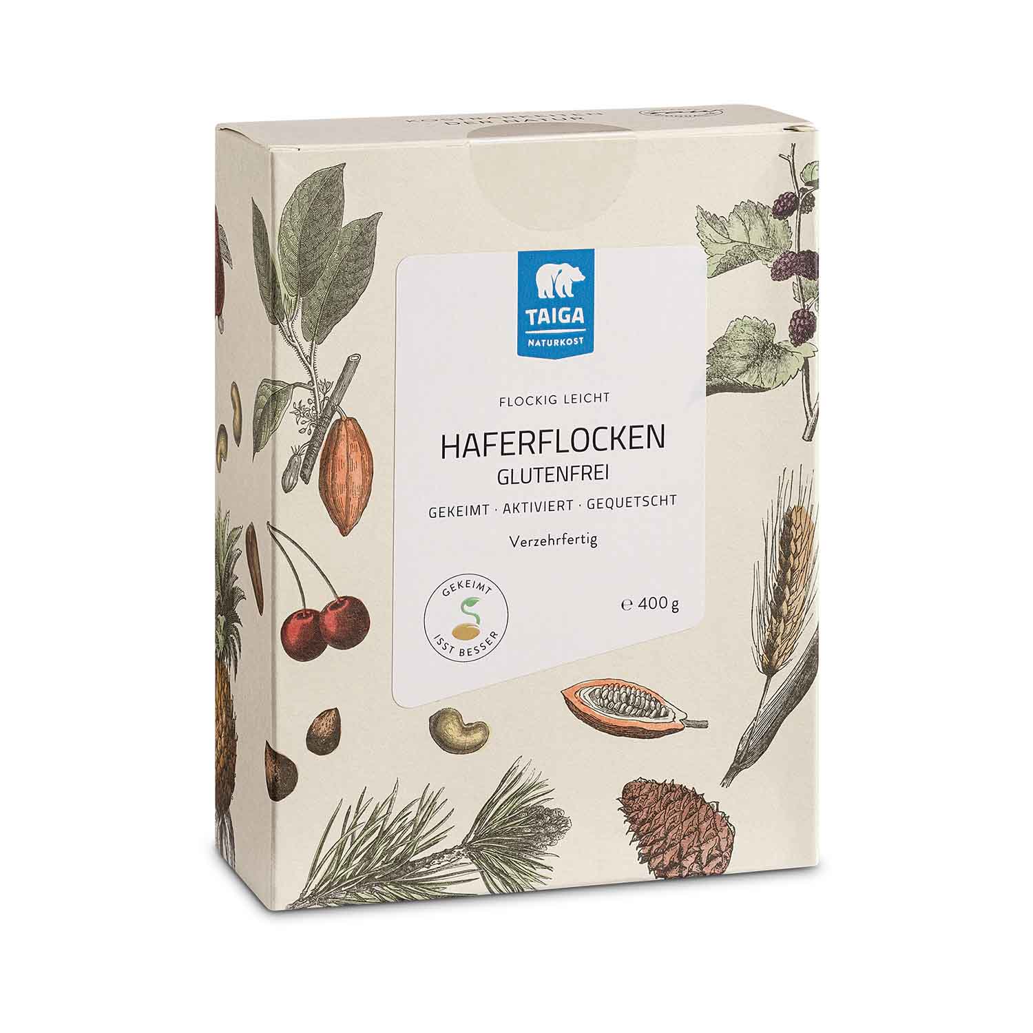 Gekeimte Haferflocken von TAIGA Naturkost verbessern durch den reduzierten Gehalt von Phytinsäure die Aufnahme wichtige Mineralstoffe wie Zink, Eisen und Kalzium.Mit einem Glutengehalt unter 20 ppm - somit praktisch glutenfrei.