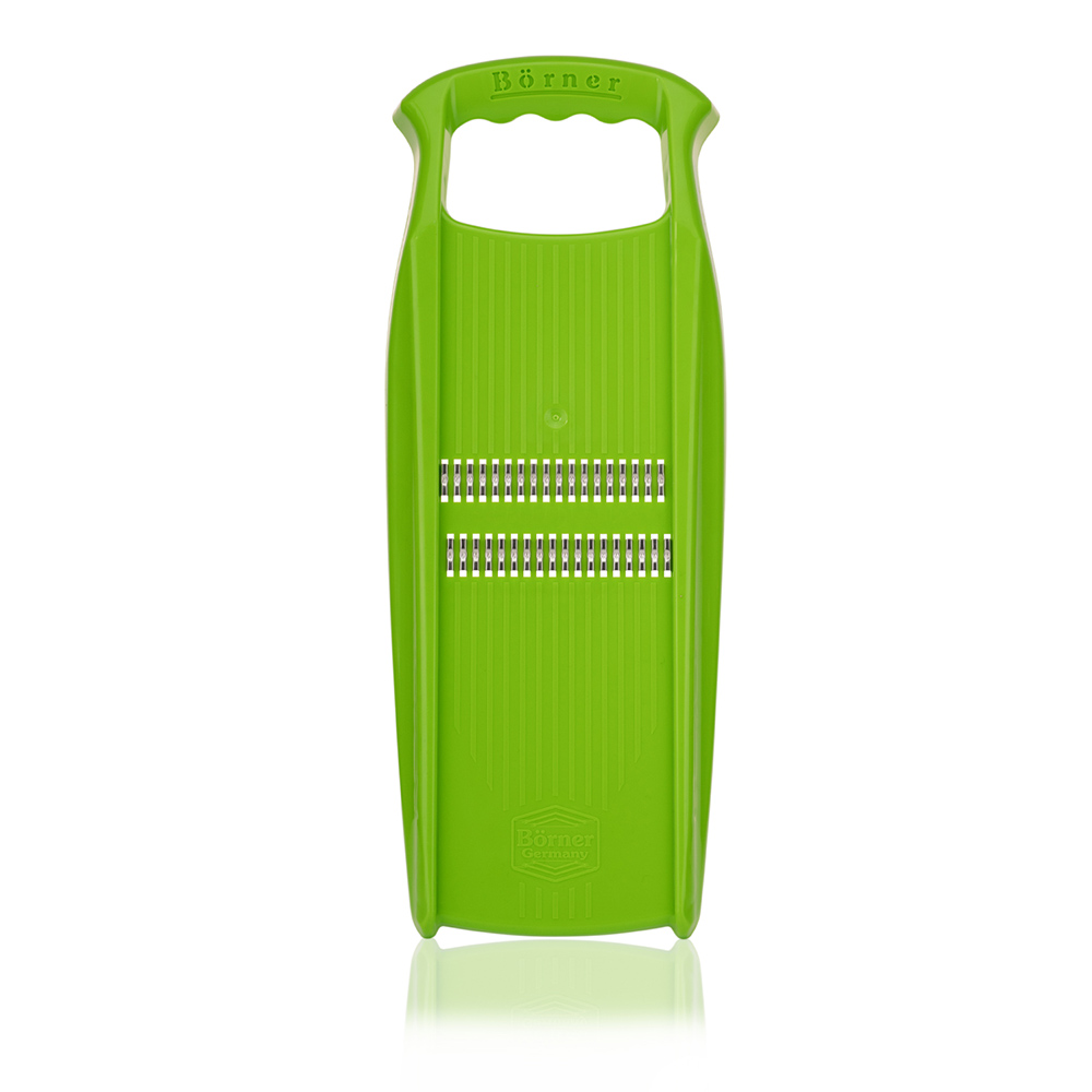 Mit der Original Börner Roko Reibe können Sie Obst und Gemüse sowie Käse zu dünnen Julienne Streifen.Beidseitig geschliffene Messerreihen reiben große Produktmengen in kurzer Zeit.