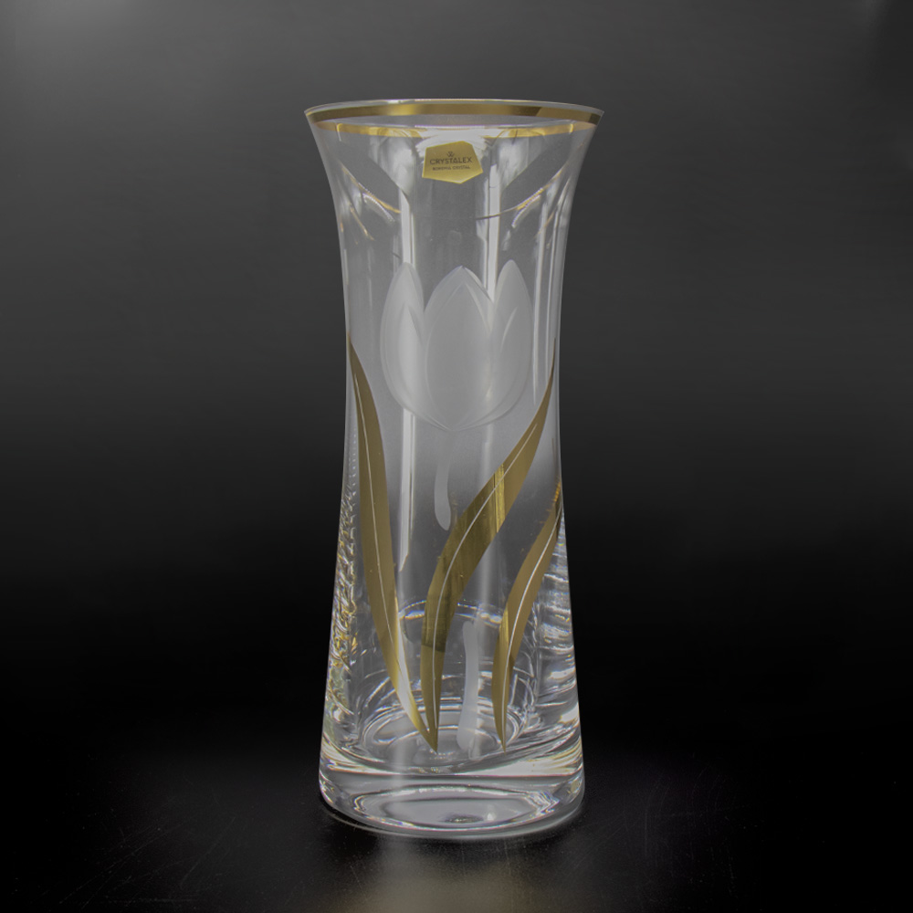 Bohemia Crystal Vase Tulpe mit Gold, 250 mm