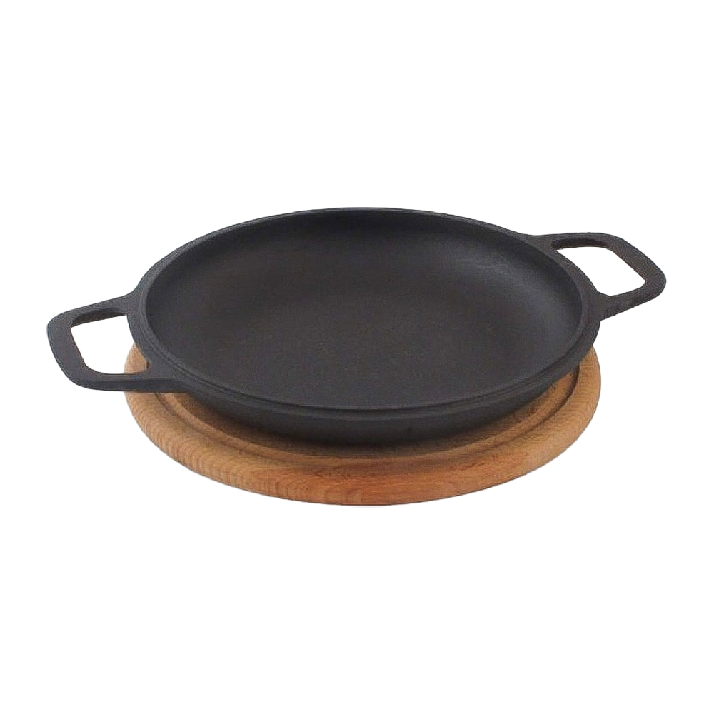Eine portionierte gusseiserne Bratpfanne mit einem Holzboden (Material - Buche) zum Servieren und Kochen. Jetzt können Sie nicht nur sich selbst und Ihre Gäste mit leckeren Gerichten erfreuen, sondern sie auch mit dem Original-Servieren überraschen - direkt vom Herd auf den Tisch. Eine portionierte Bratpfanne macht das Essen noch ansprechender und appetitlicher. Jedes Stück bewahrt seine Wärme und sein Aroma.