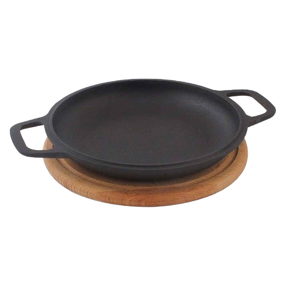 Eine portionierte Pfanne aus Gusseisen mit einem Holzträger (Material - Buche) zum Servieren und Zubereiten von Speisen. Jetzt können Sie sich und Ihre Gäste nicht nur mit köstlichen Gerichten verwöhnen, sondern auch mit einer originellen Präsentation überraschen - vom Herd bis zum Tisch. Essen in einer portionierten Pfanne sieht noch appetitlicher aus.