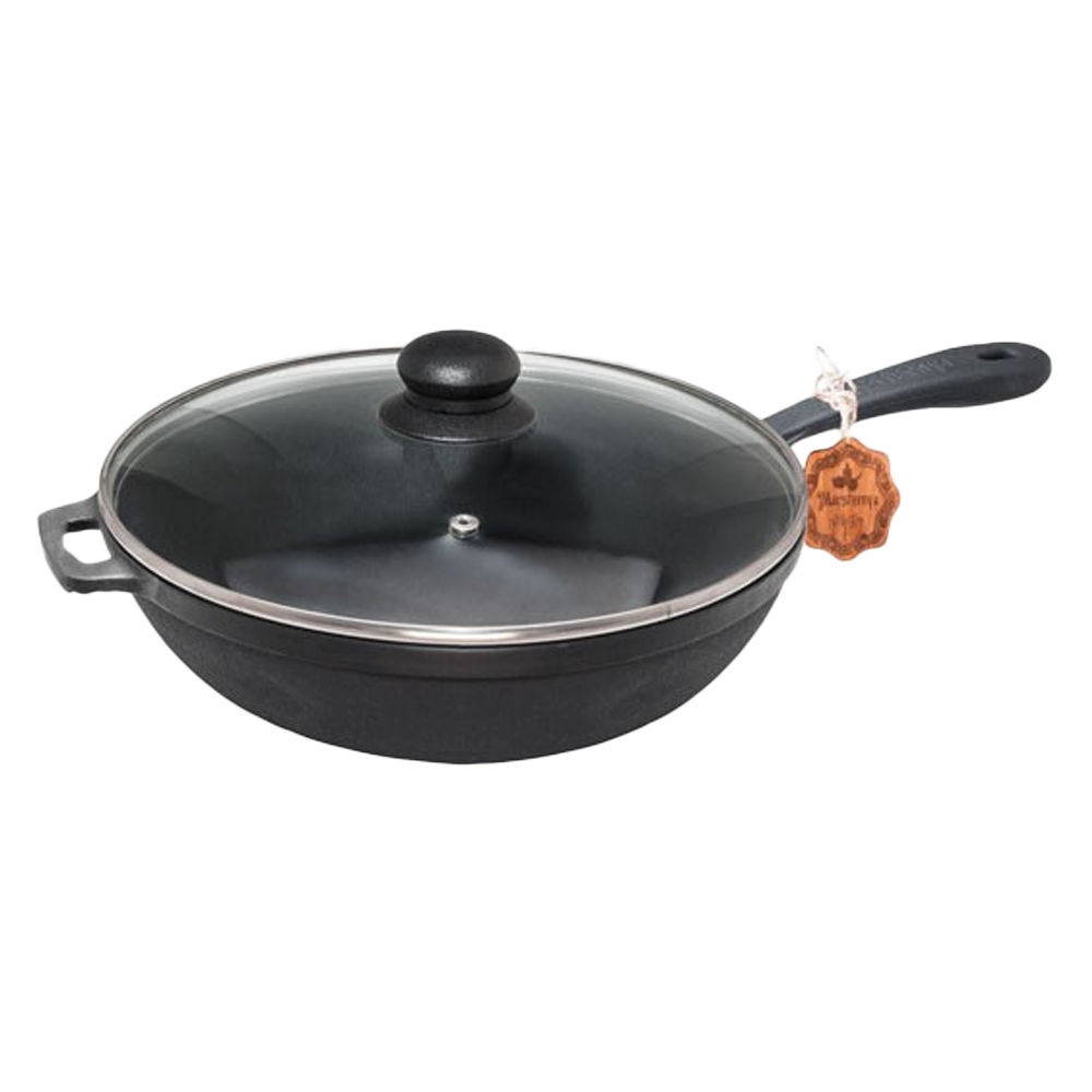 Bratpfanne aus Gusseisen mit Glasdeckel und Gusseisengriff, 24×6 cm