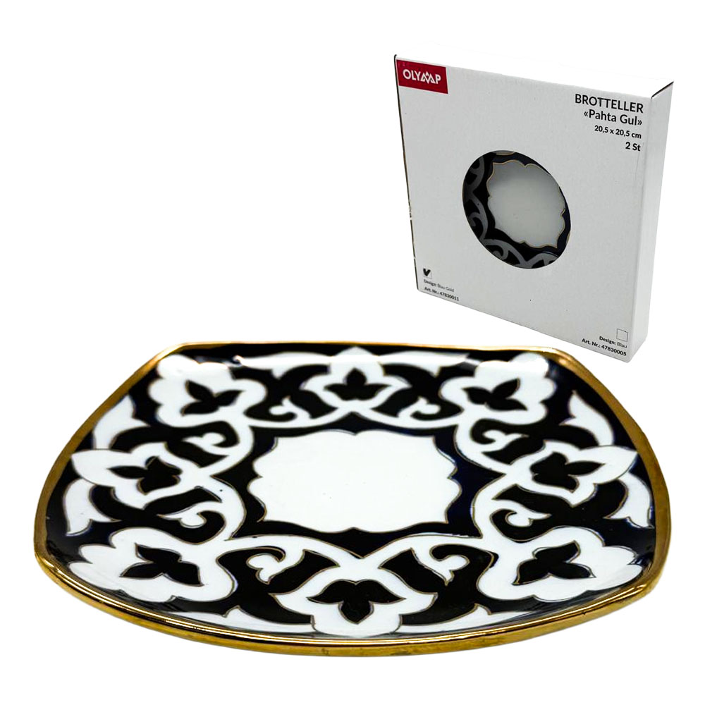 Brotteller Pahta Gul Blau-Gold, Usbekistan, Ø 20,5 cm, 2 Stück