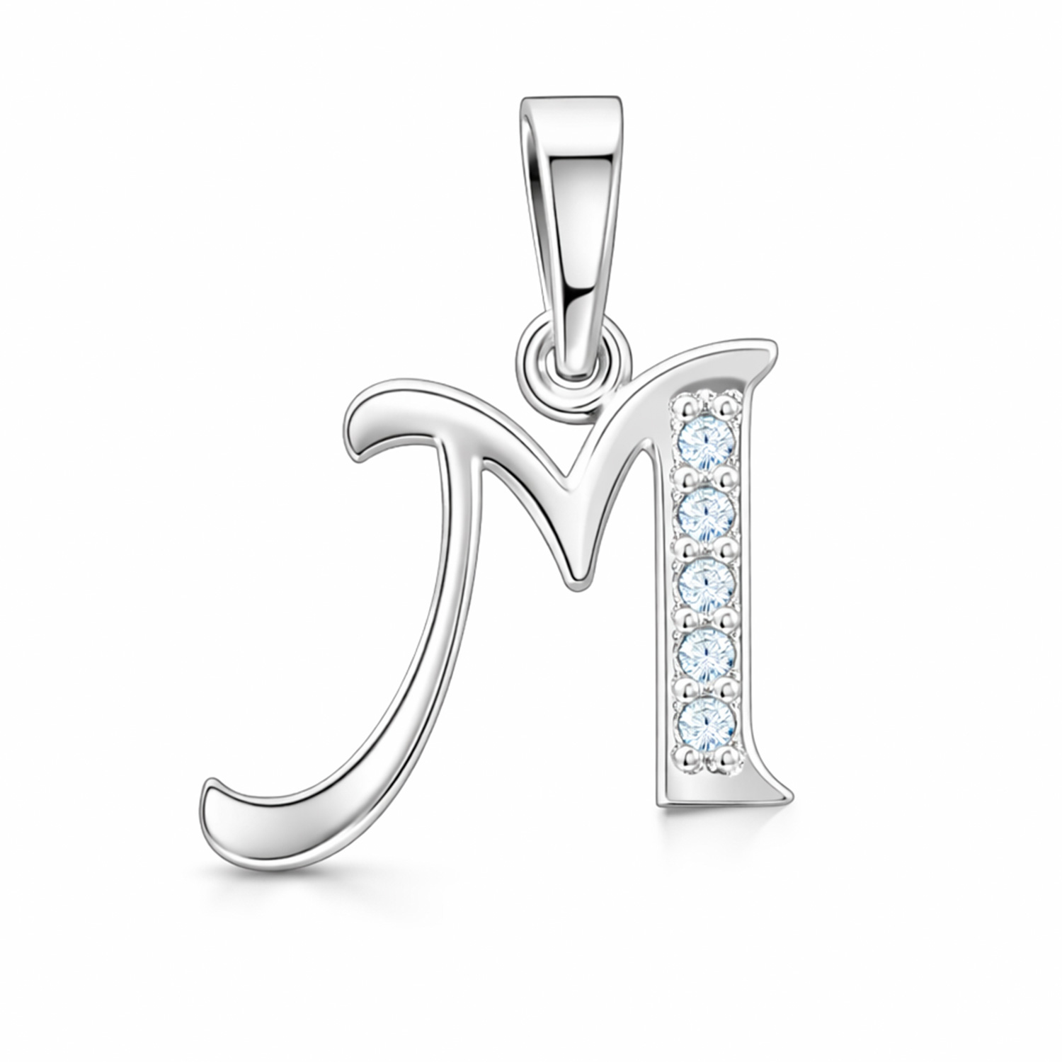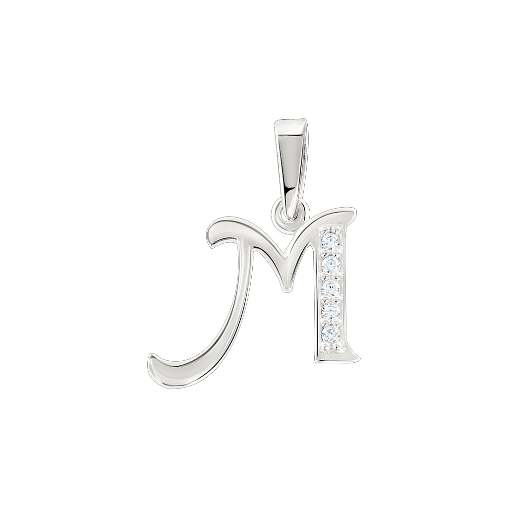 Wunderschöner Anhänger in Form des Buchstabens „M“ aus 925er Silber mit fünf funkelnden Zirkonia-Steinen, Höhe ca. 21 mm