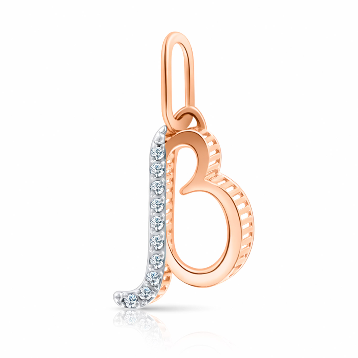 Buchstabenanhänger "B" aus 585er Rot-/Weißgold mit Zirkonia, Höhe ca. 20 mm