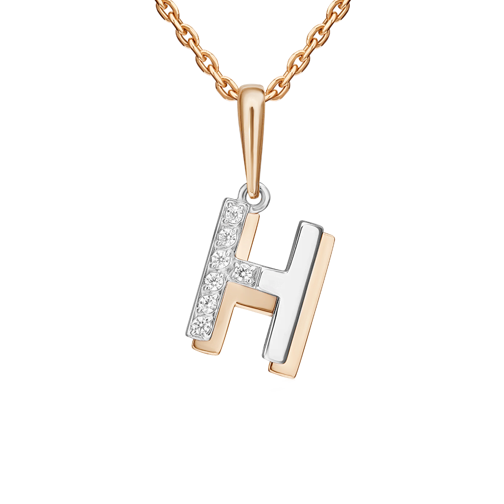 Buchstabenanhänger "H" aus 585er Rotgold / Weißgold, mit Zirkonia, Höhe ca. 21 mm