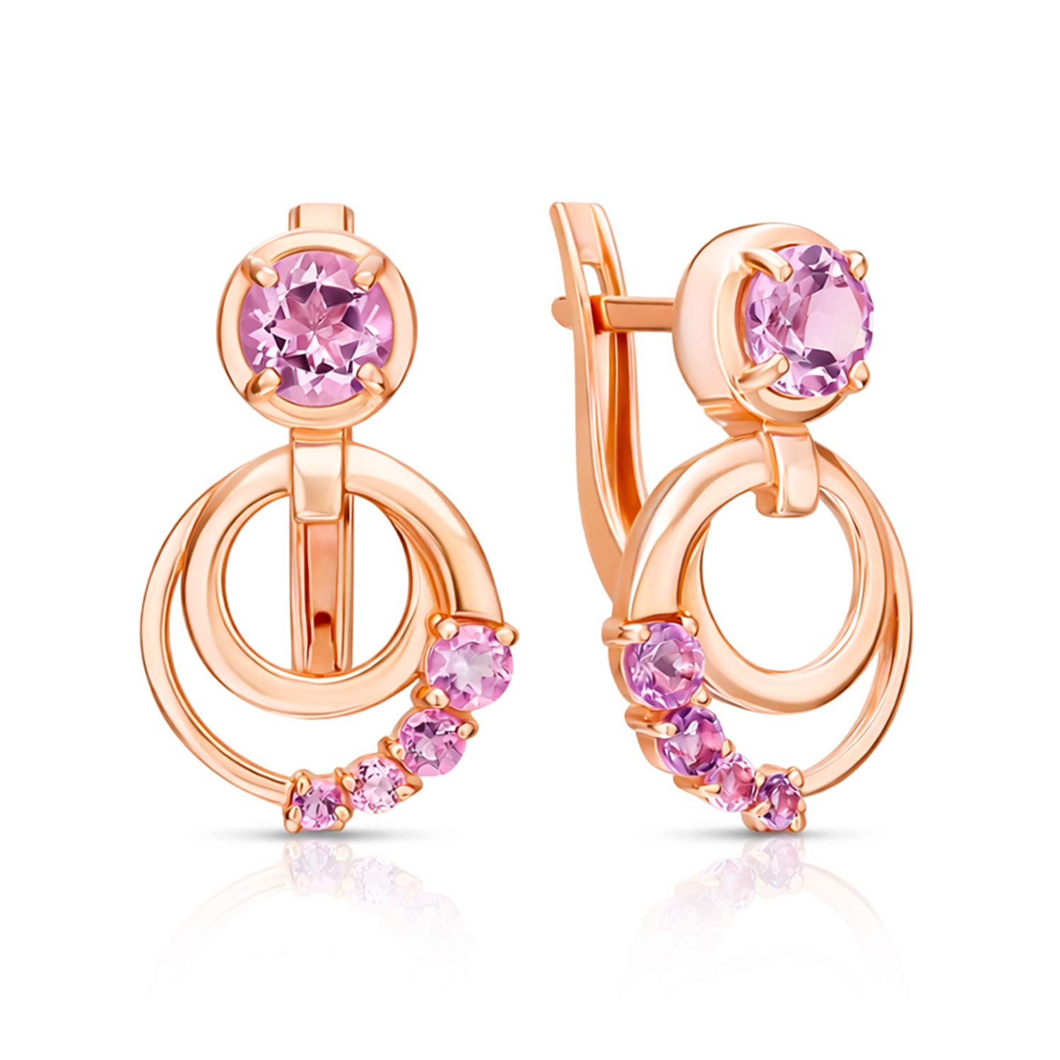 Charmante Ohrringe aus Rotgold 585, besetzt mit zart lavendelfarbenen Amethysten