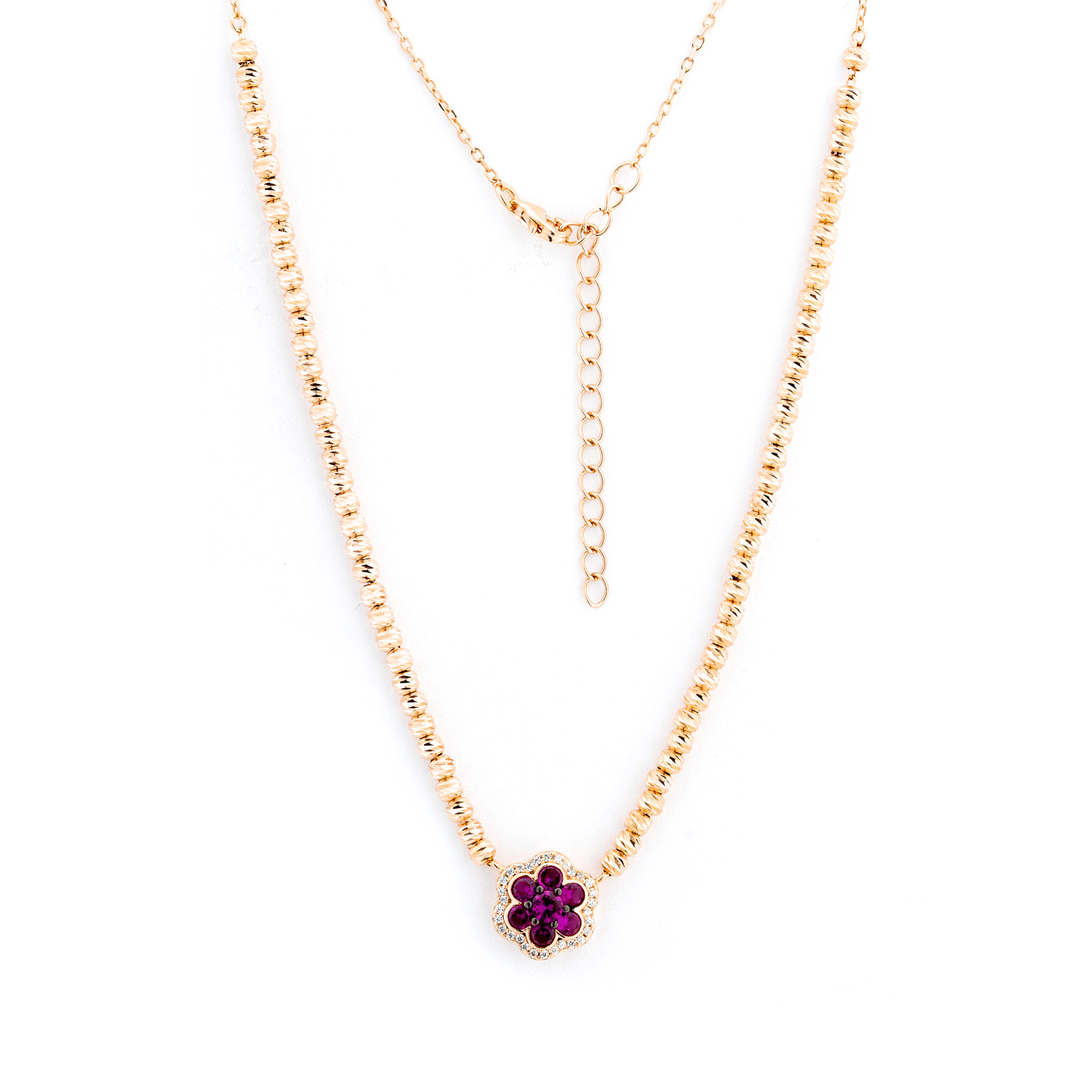 Collier aus vergoldetem 925 Silber mit roter Zirkonia-Blume, Karabinerverschluss