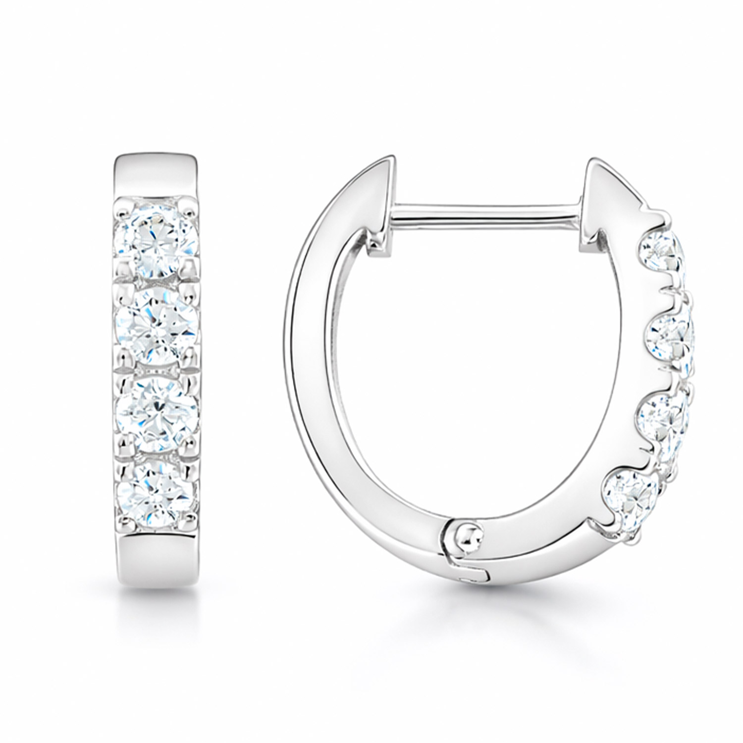 Attraktive Creolen aus Sterlingsilber, mit je 3 farblosen Zirkonia-Einsätzen, Höhe ≈13 mm.