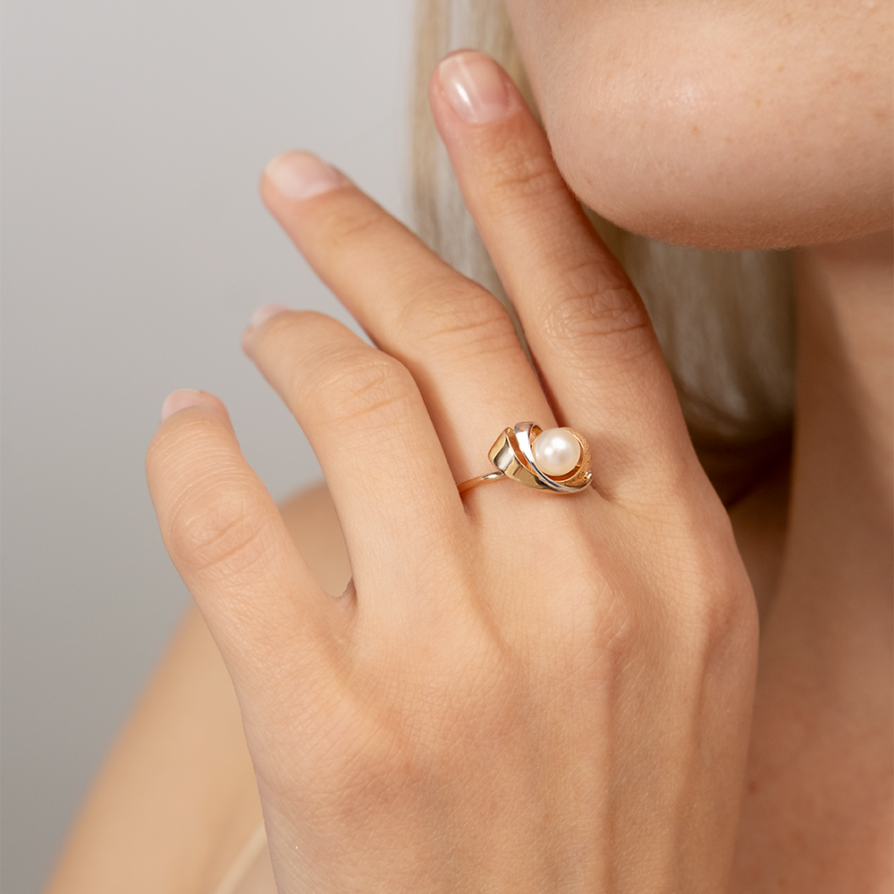 Damenring aus 585er Rot- / Weißgold mit Perle - Durchmesser ca. 6-7 mm