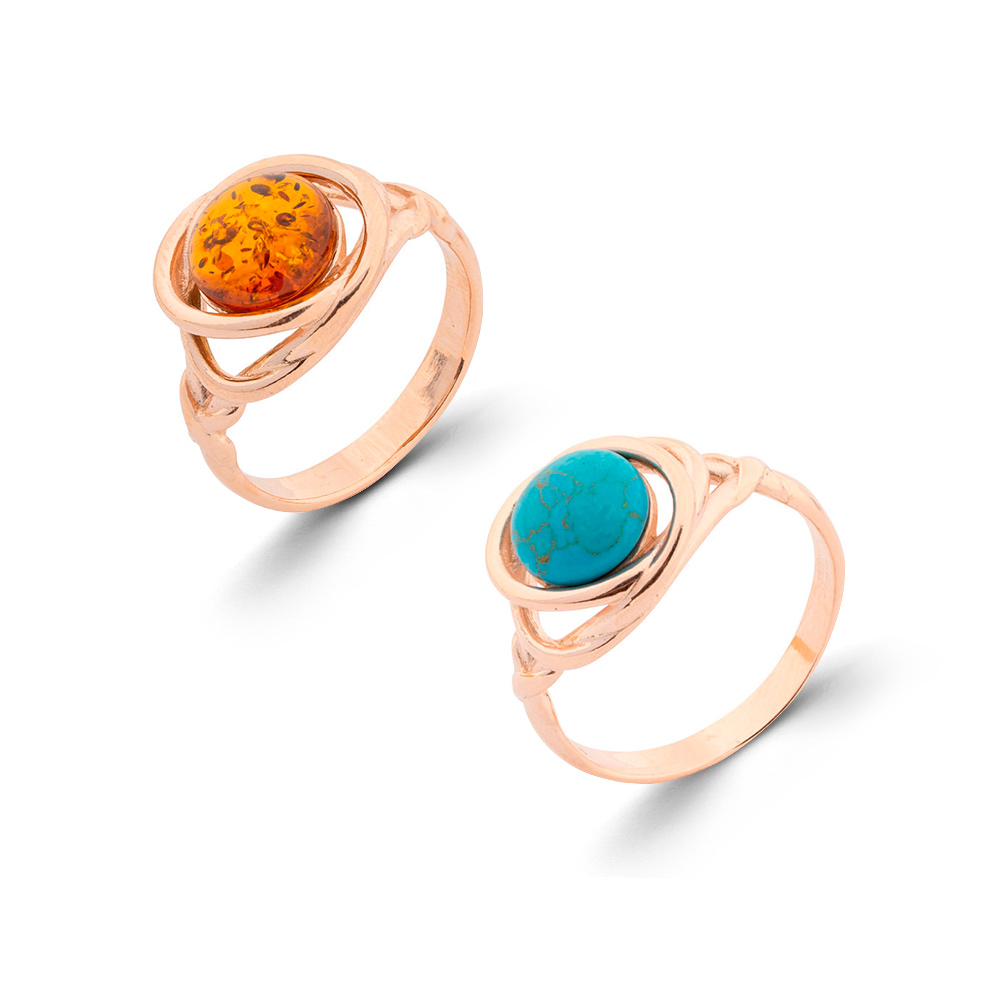 Damenring aus 925 Silber mit Cognac-Bernstein oder Türkis, rosévergoldet