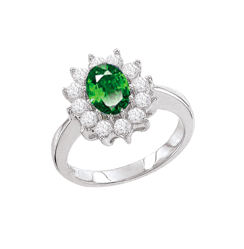 Damenring aus 925 Silber mit einem Smaragd und Zirkonia