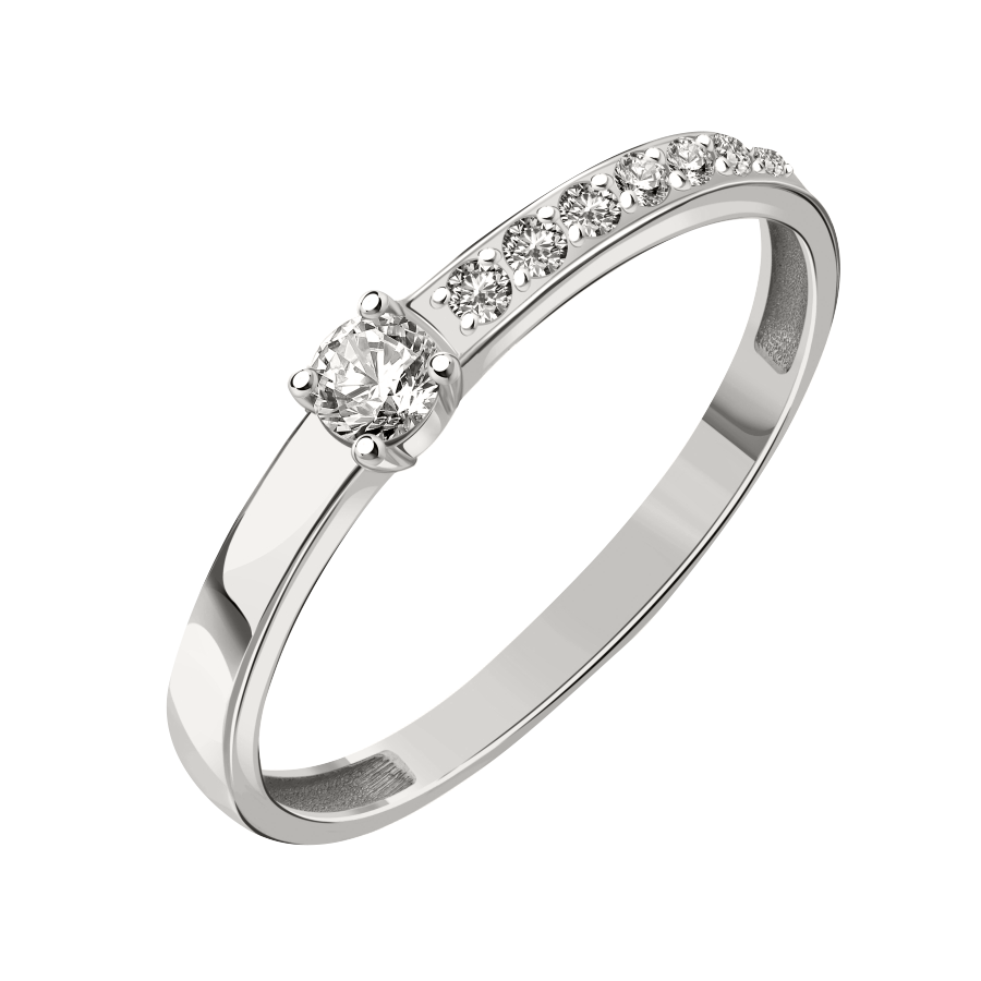 Weißgold ist eines der schönsten und edelsten Schmuckmaterialien, es zeichnet sich durch seinen Glanz und seine Helligkeit aus. Auch bei Weißgold am besten in Kombination mit Zirkonia. Die Steine machen dieses Metall luftig, schön und wahrhaftig glänzend. Der Ring hat eine unvergleichlich attraktive Ausstrahlung, die jeden anzieht und interessiert. Das bezaubernde Schmuckstück fällt durch den großen Kristall in der Mitte und die kleineren funkelnden Kristalle auf der Lünette neben dem zentralen Kristall ins Auge. Dies ist eine einzigartige und unglaublich schöne Designlösung.Eine ideale Wahl für Liebhaber des klassischen Designs mit einem Hauch von Originalität. Ein solcher Ring ist ein Indikator für raffinierten Geschmack und modernen Stil. Der Schmuck passt perfekt zu fast jedem Image.