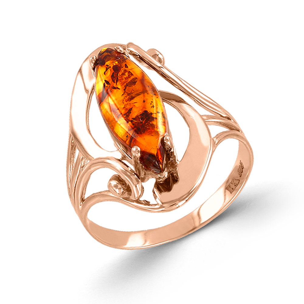 Attraktiver Damenring aus 585er Rotgold mit Bernstein