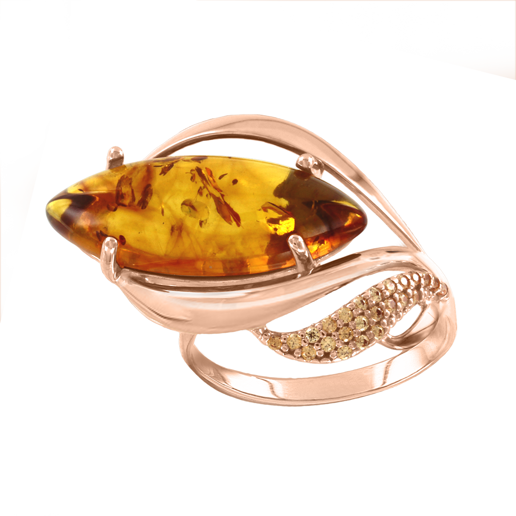 bezaubernder Damenring aus Silber 925, vergoldet, mit Bernstein und Zirkonia