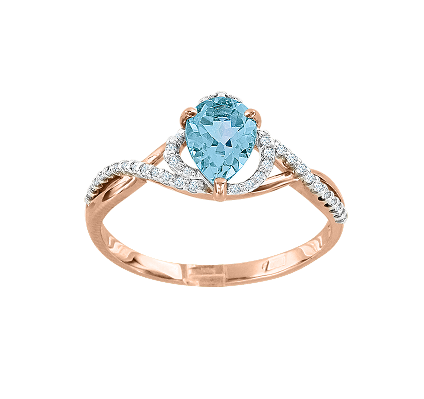 attraktiver Damenring aus 585er Gold mit Zirkonia und blau Topas