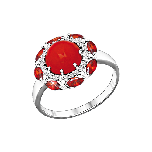 herrlicher Damenring, Silber 925, Coral und Zirkonia