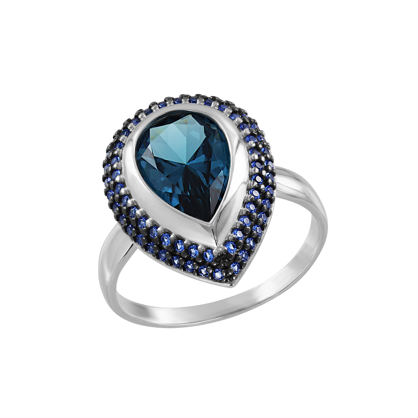 süßer Damenring, Silber 925, London Sitall und blau Zirkonia