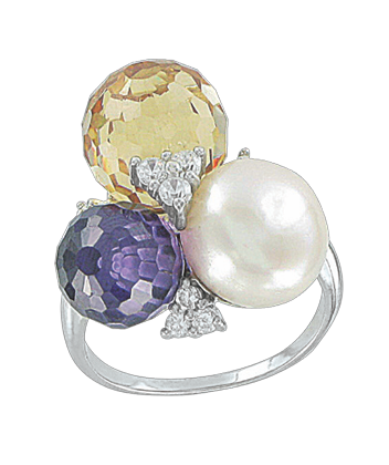 stilvoller Damenring, Silber 925, Zirkonia, Perle