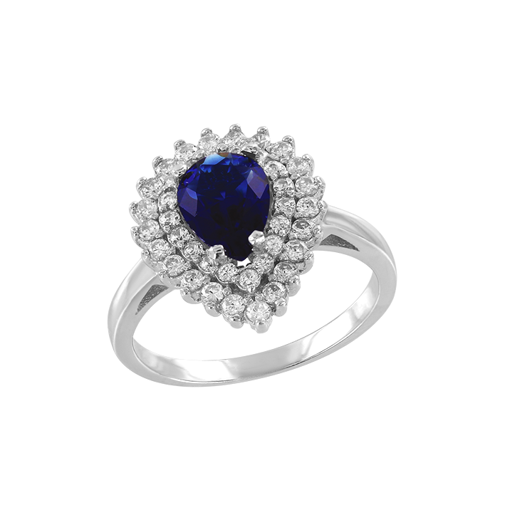 herrlicher Damenring mit Saphir HTS und Zirkonia, Silber 925