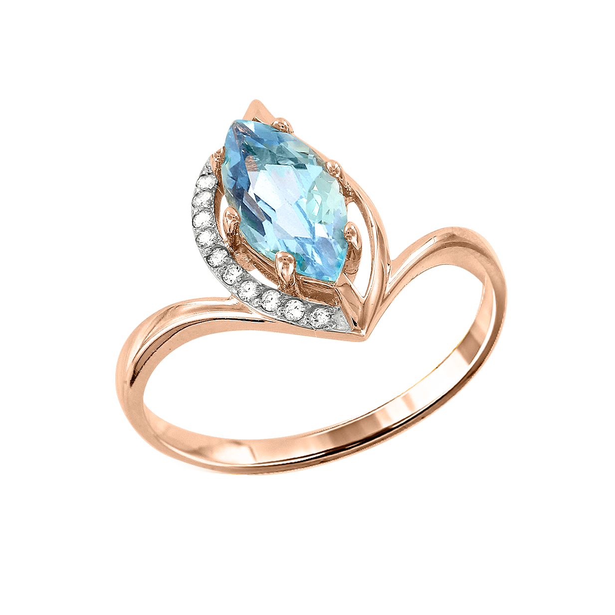 Zarter Damenring, Rotgold 585, blau Topas mit Zirkonia