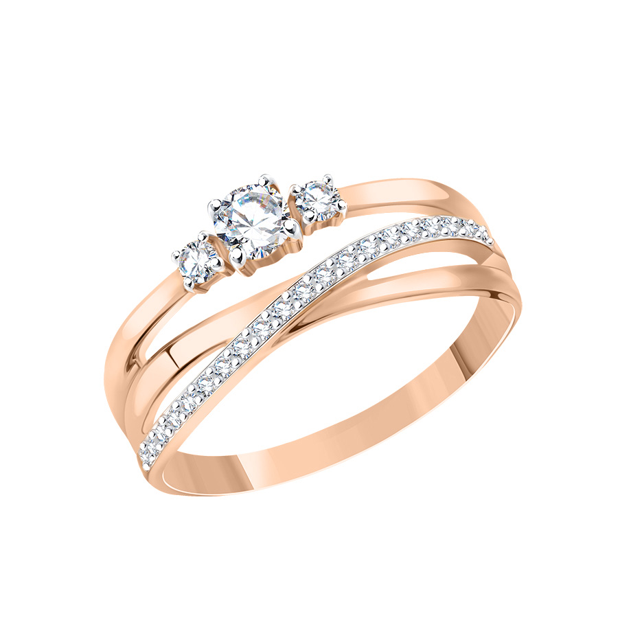 Dieser Damenring aus russischem 585er Rotgold mit Zirkonia ist das Inbild zarter Eleganz und modernen Designs. Seine raffinierte diagonale Linie, verziert mit funkelnden Zirkonia, und die zentralen Steine schaffen eine beeindruckende Inkrustation, die mit ihrem Glanz und ihrer Perfektion fasziniert. Dieses Schmuckstück wird sowohl zu alltäglichen als auch zu festlichen Outfits eine harmonische Ergänzung sein und die Einzigartigkeit und den feinen Geschmack seiner Trägerin unterstreichen.