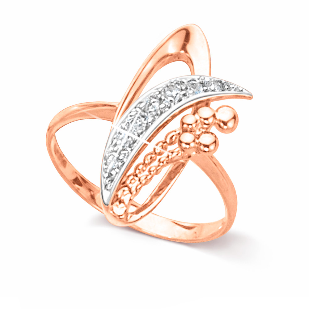 Origineller Damenring aus 585er Rot- und Weißgold mit Zirkonia
