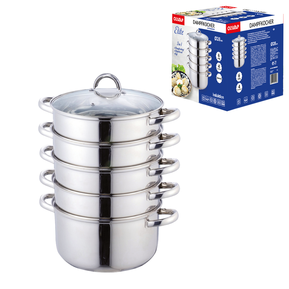 Dampfkocher Ø 28 cm, 6-tlg. aus Edelstahl mit Glasdeckel