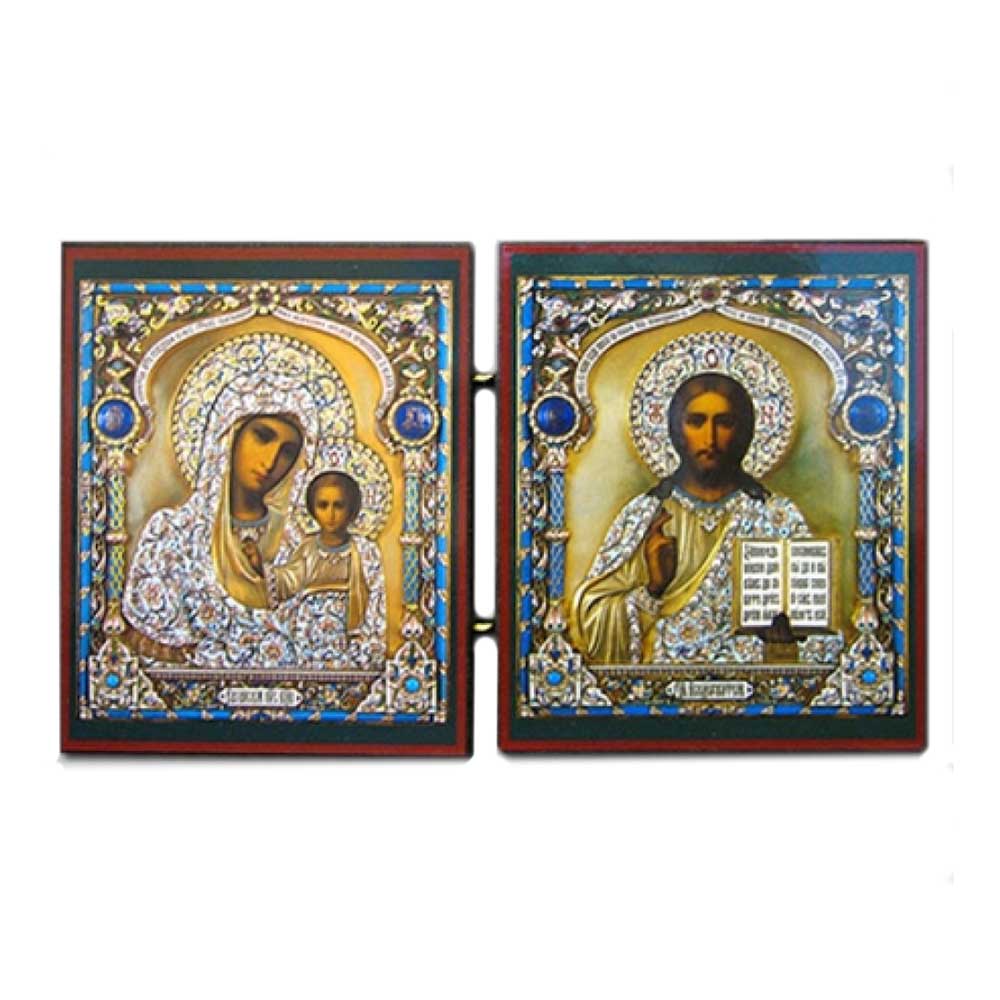 Diptychon-Ikone, aus Holz, Doppelprägung, 15x22 cm