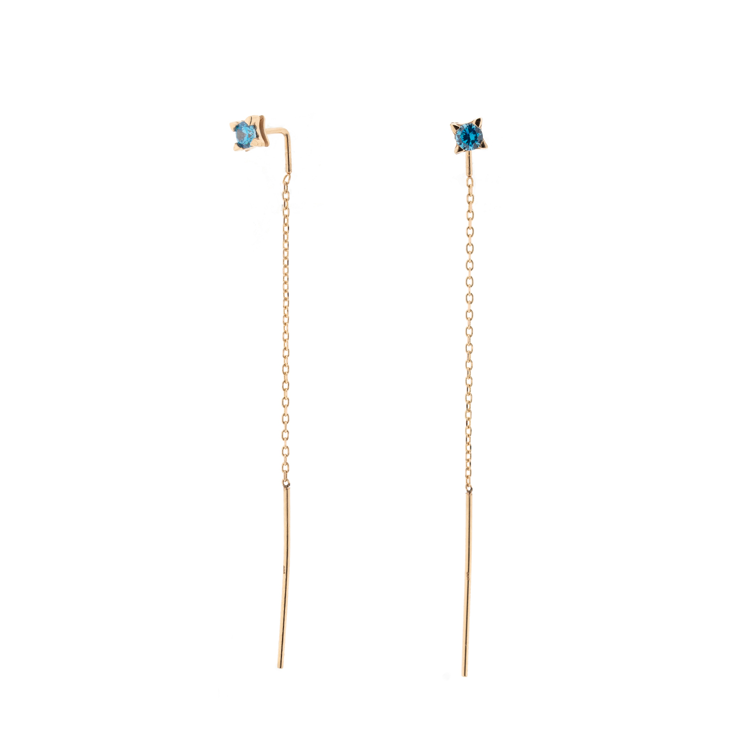Durchzieher Ohrringe aus 585 Rotgold mit blauen Zirkonia