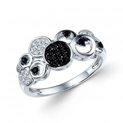 Sokolov Damenring aus 925 Silber mit Zirkonia und schwarzen Spinellen 17 mm (53)