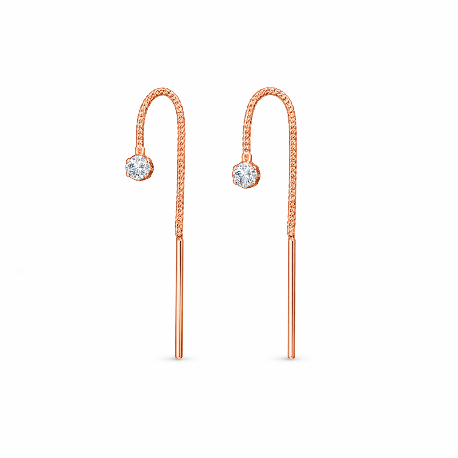 Durchzieher Ohrringe aus 585 Rotgold mit Zirkonia, Länge ca. 55 mm