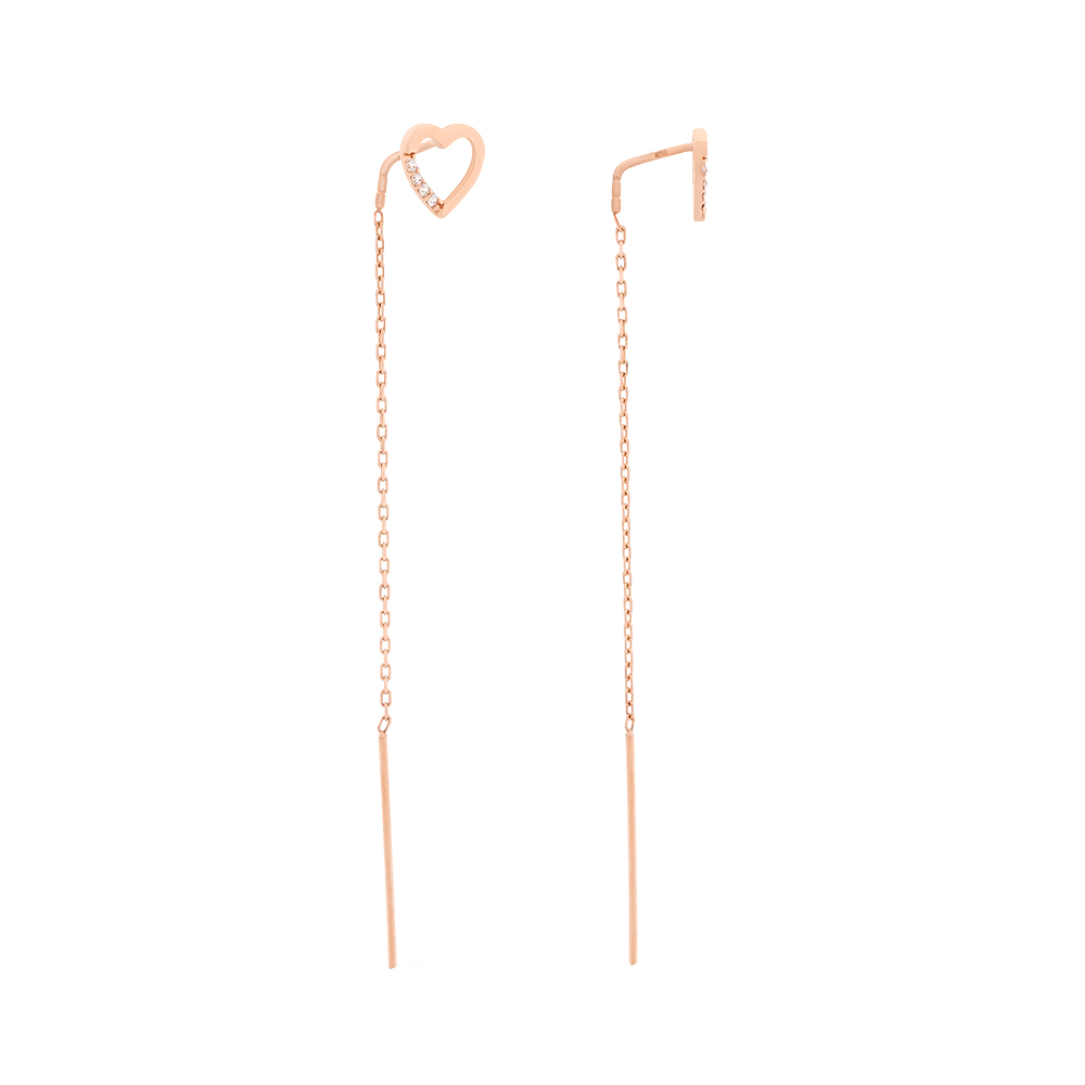 Herzförmige Durchzieher Ohrringe aus 585 Rotgold mit Zirkonia