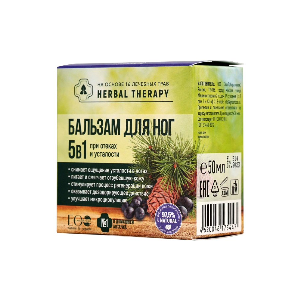 "ECO Laboratorie" / Serie Herbal Therapy - 5-in-1-Fußbalsam gegen Schwellungen und Müdigkeit, 50 ml