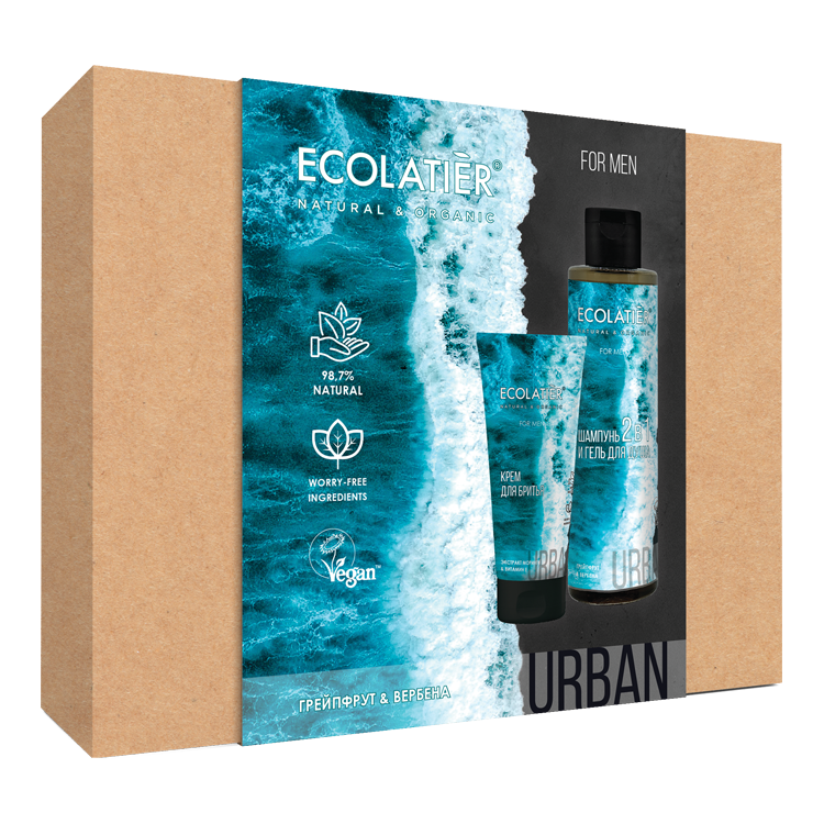 Geschenkset für Männer der Serie "Ecolatier Urban": Duschgel & Shampoo 2-in-1 und Rasiercreme (200ml + 100ml)
